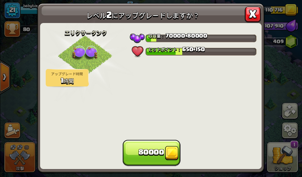 大工の拠点の方ではエリクサータンクをレベル2にアップグレードしました。